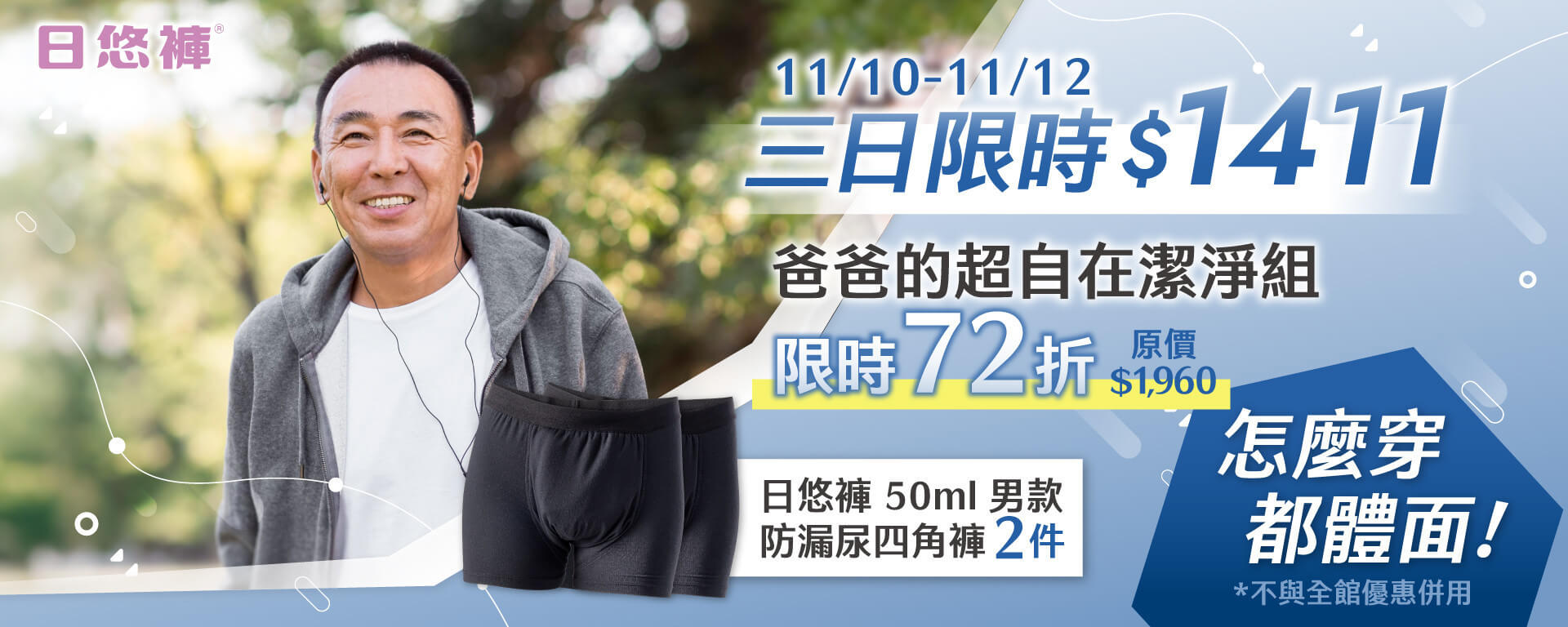 漏尿|男用 50ml 吸水合身四角褲(不可搭配加量墊)|日悠褲