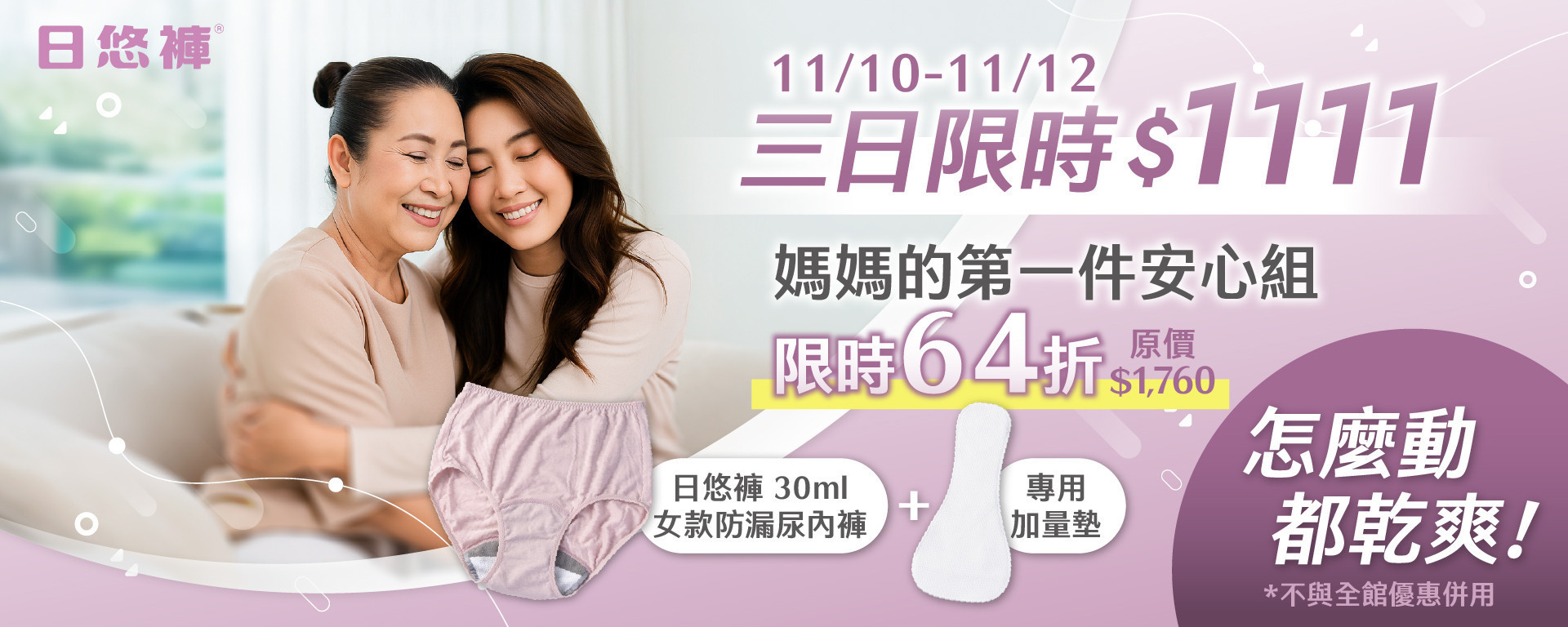 小漏不擔心!日悠褲女用 30ml 吸水內褲 3 件狂降 $1111