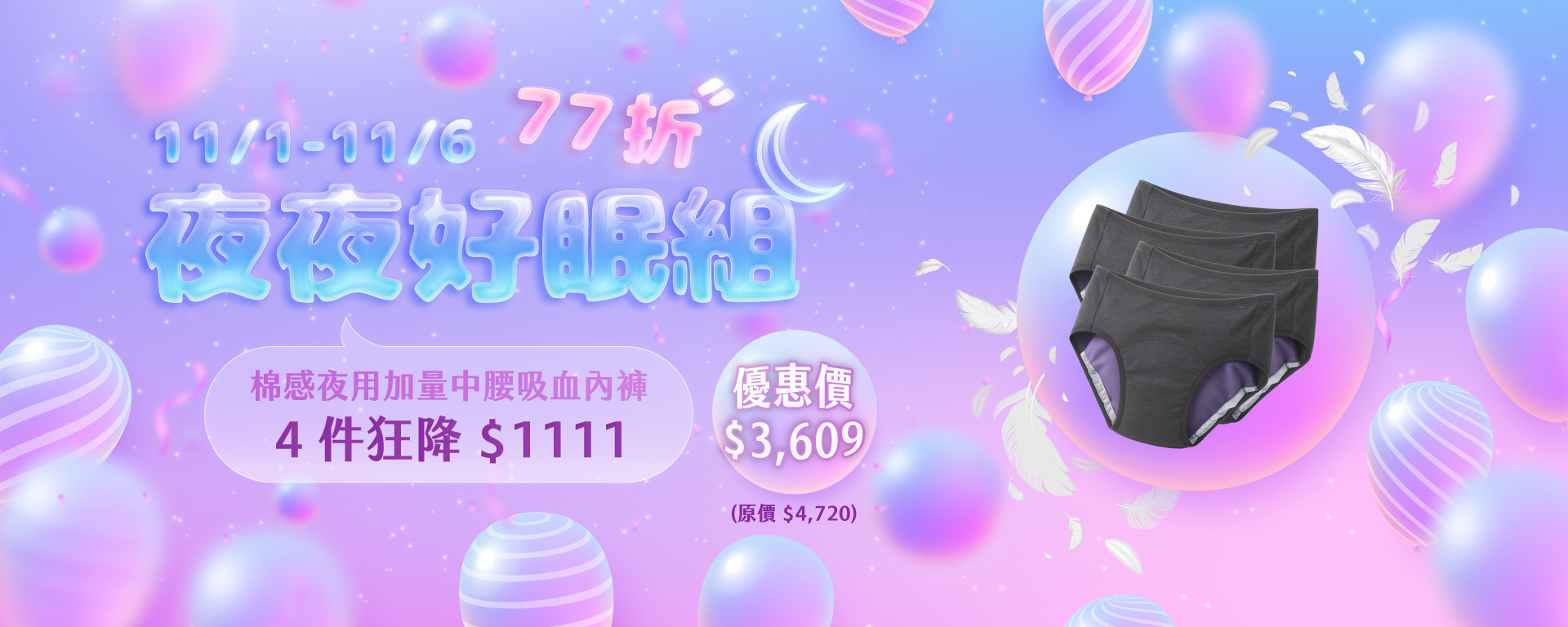 夜夜好眠組|棉感加量吸血內褲 4 件狂降 $1111