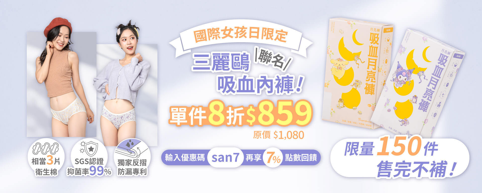三麗鷗|日用酷洛米中腰吸血內褲 ( 3片衛生棉)