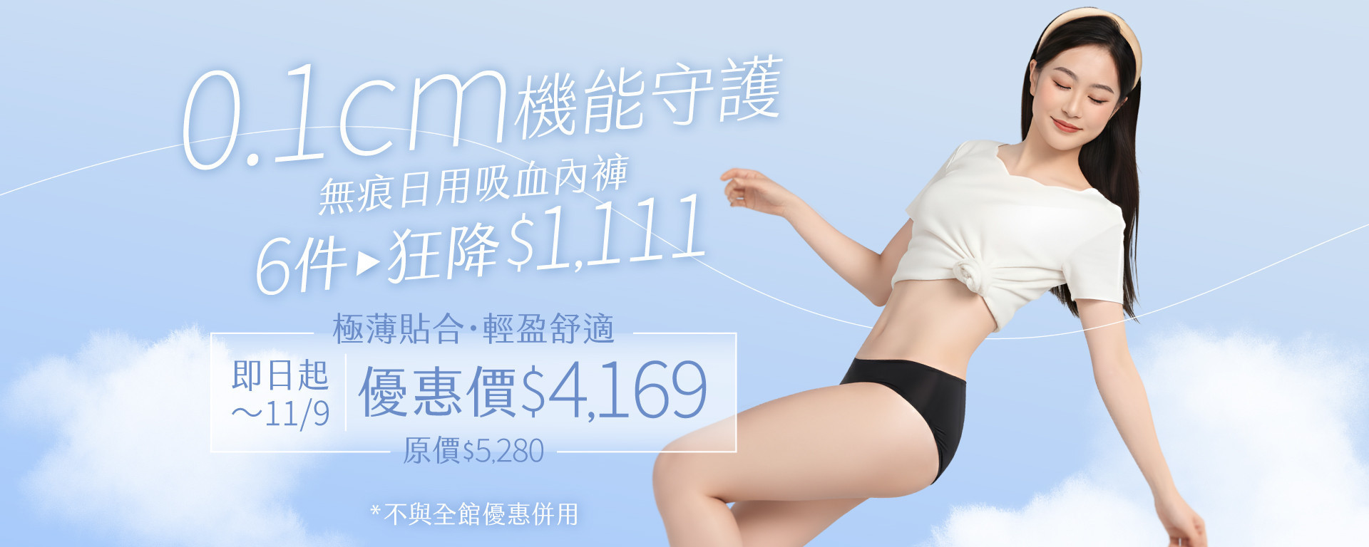 0.1cm 機能守護|無痕日用吸血內褲 6 件狂降 $1111