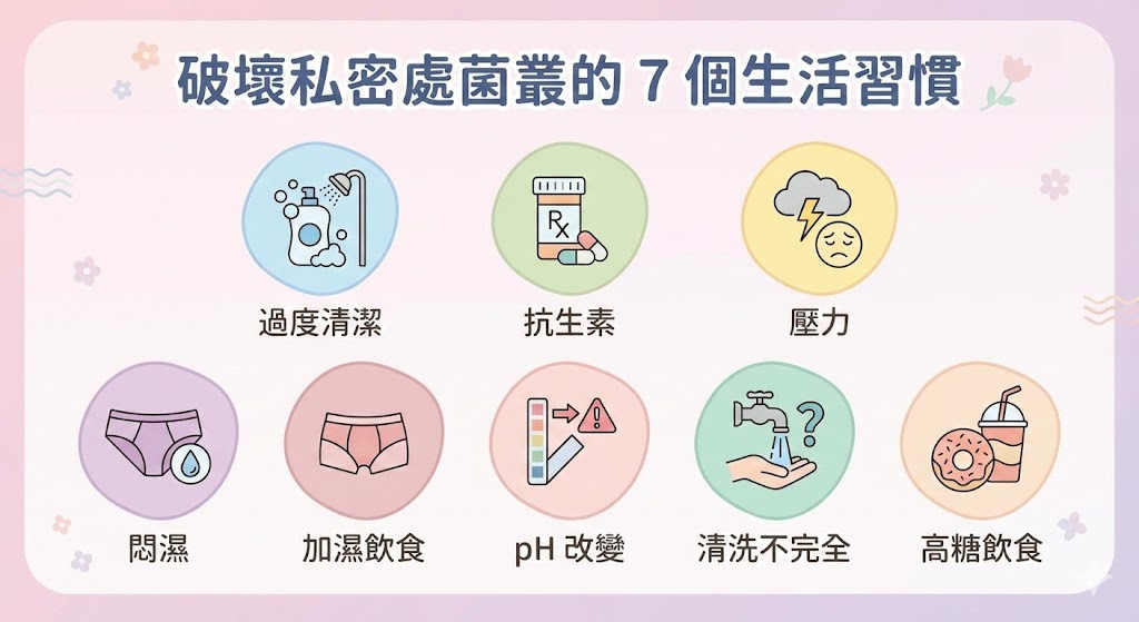私密處問題大部分不是清潔不足,而是陰道菌叢生態失衡。