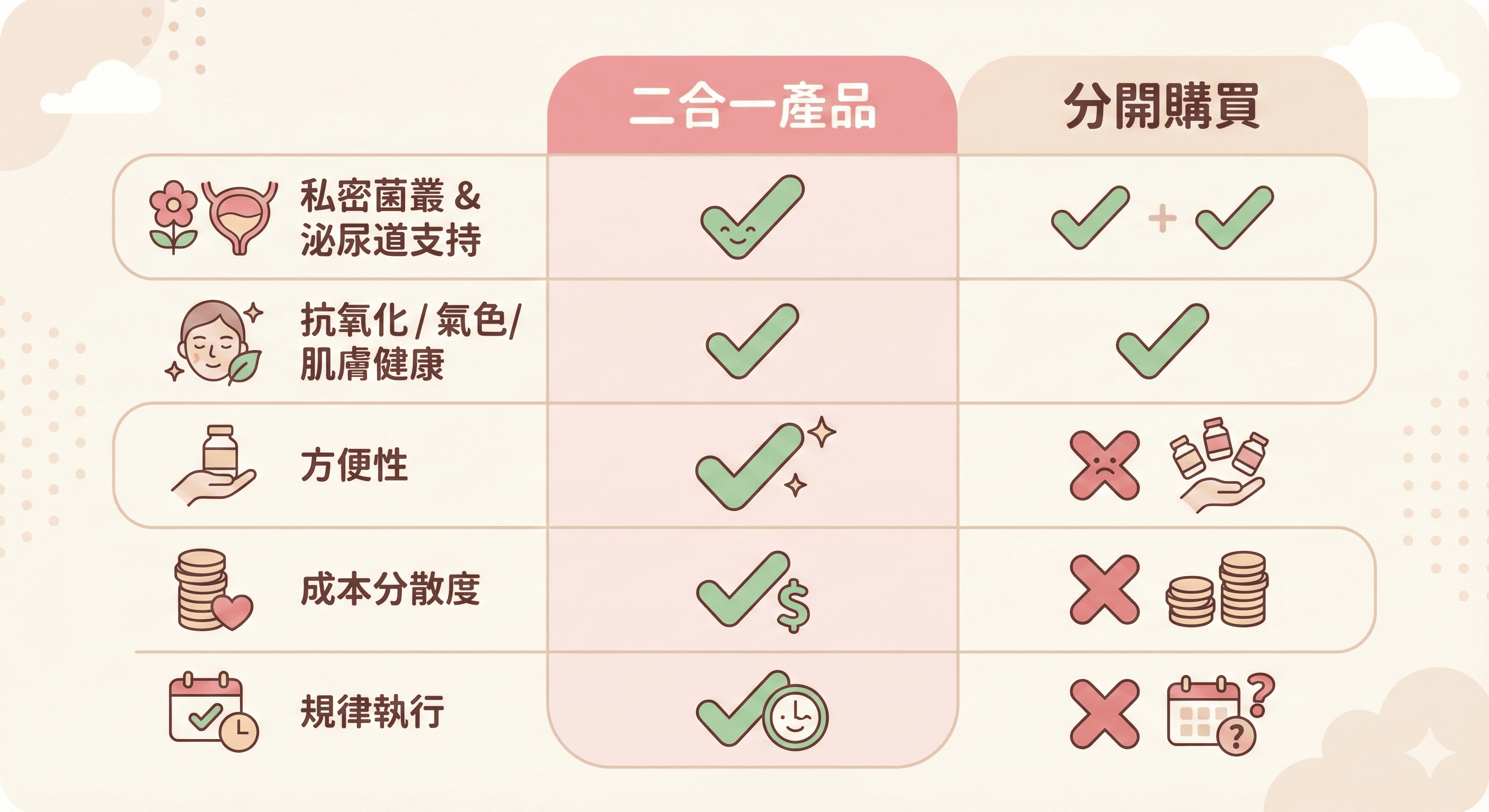 ✔ 想一次照顧「私密 + 抗氧化 / 氣色」