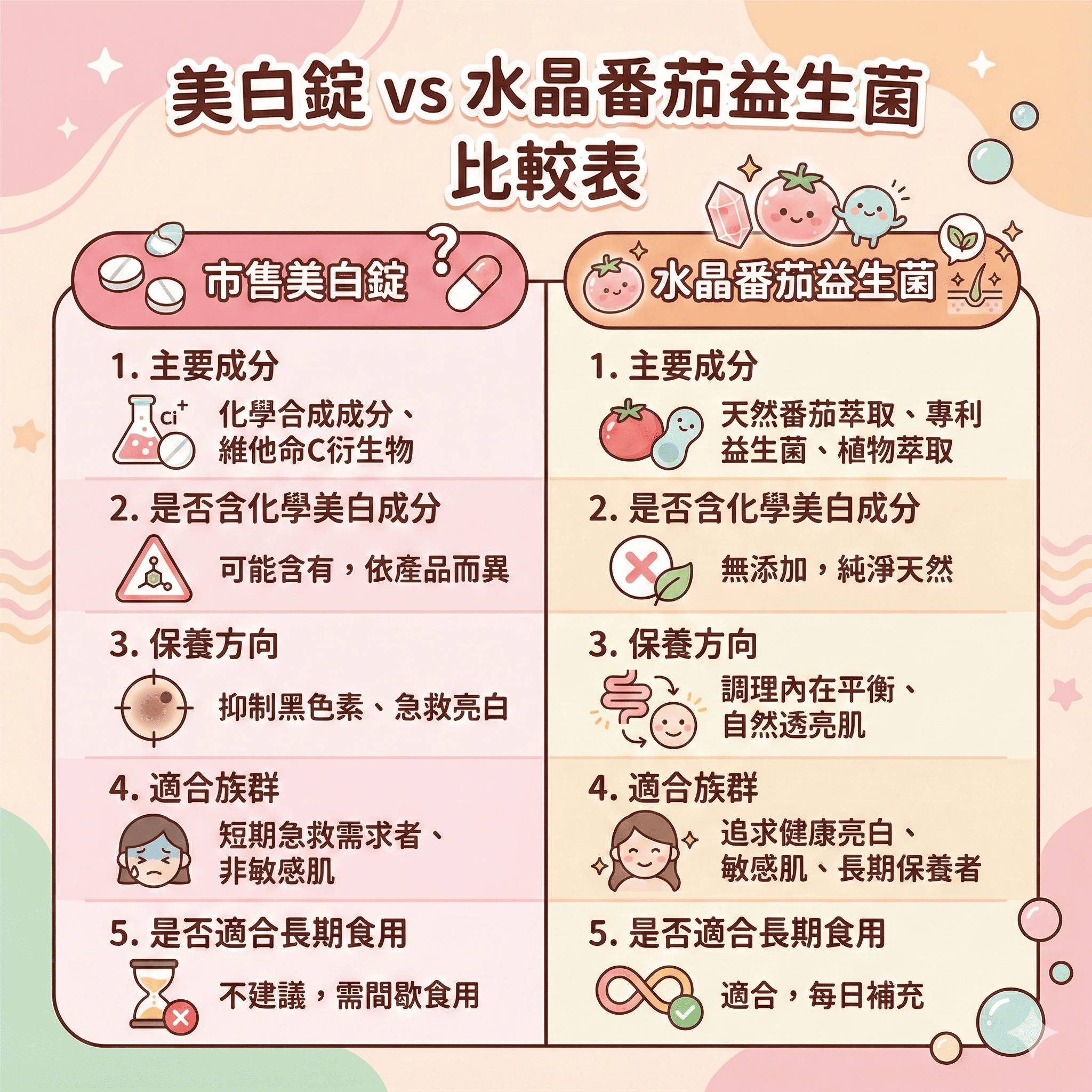 🆚 「美白錠」 vs 「水晶番茄益生菌」比較表