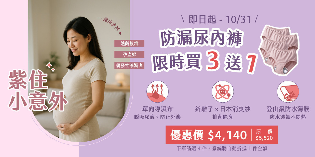 谷慕慕,日悠褲,吸水內褲,防漏尿,買三送一,期間限定活動