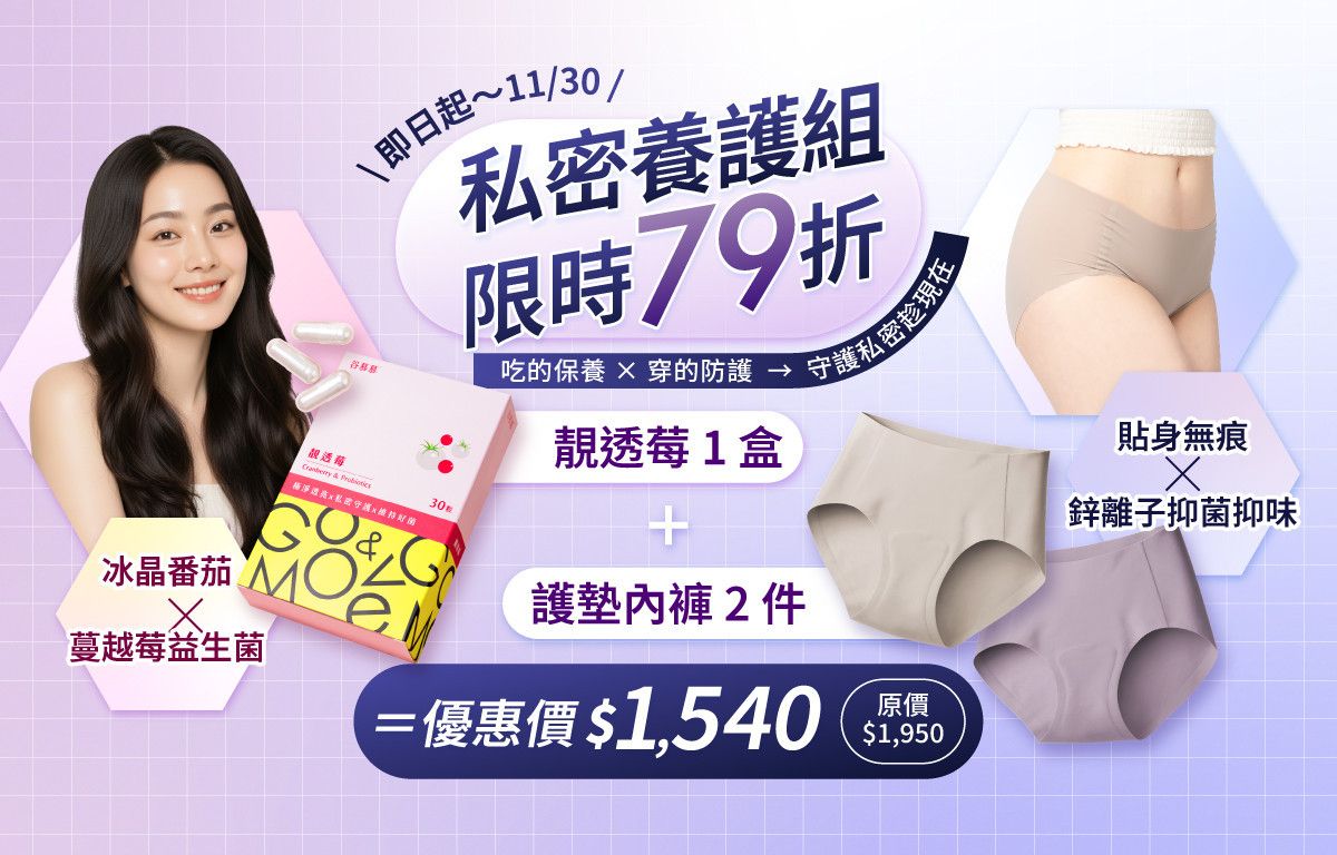 私密養護組|冰晶番茄蔓越莓益生菌+分泌物剋星護墊內褲限時 79 折