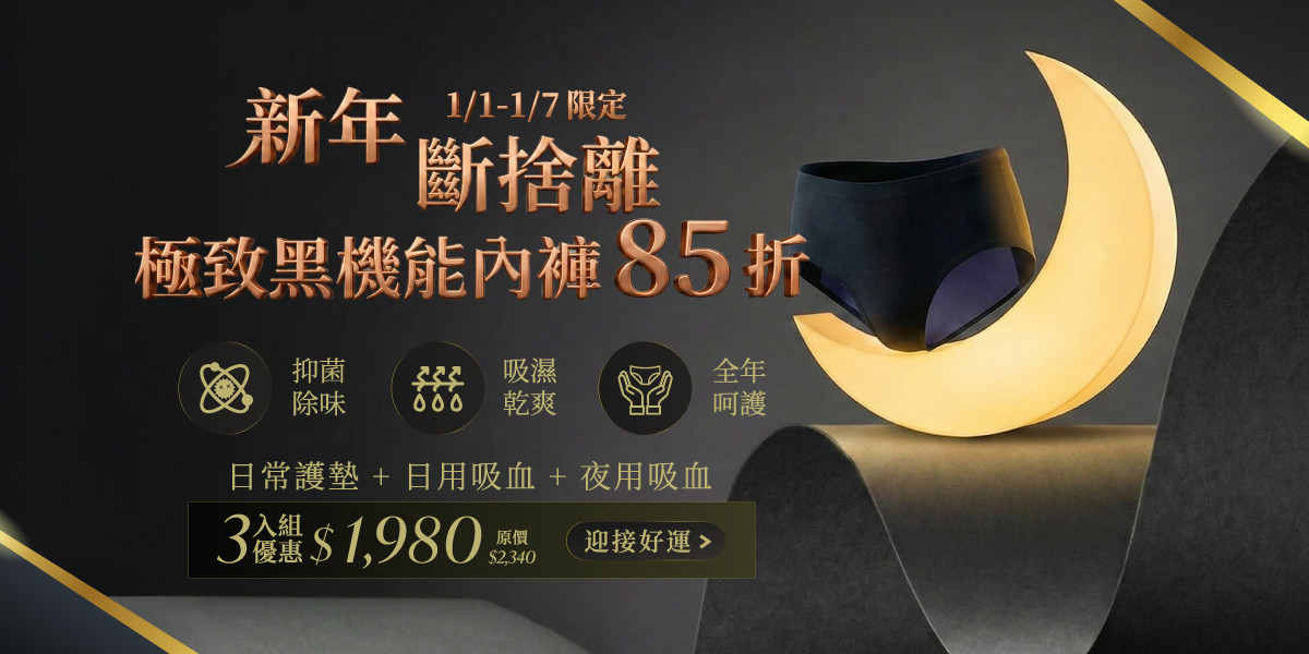 新年斷捨離|極致黑無痕機能組:護墊+日夜吸血內褲 85 折