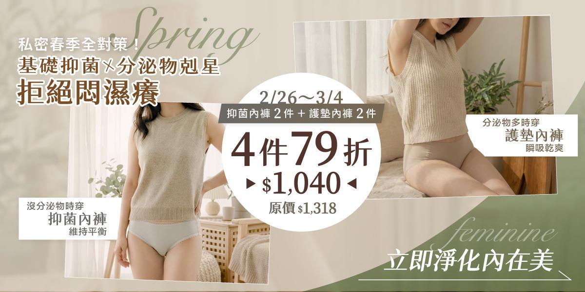【春日淨化論】拒絕悶濕癢!抑菌內褲+護墊內褲 4 入 79 折