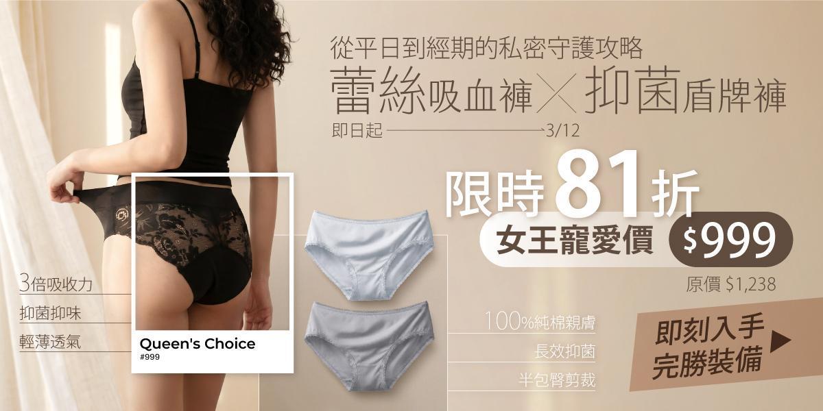 【女王完勝組】蕾絲吸血褲+2件抑菌盾牌褲 $999 (原價$1238)