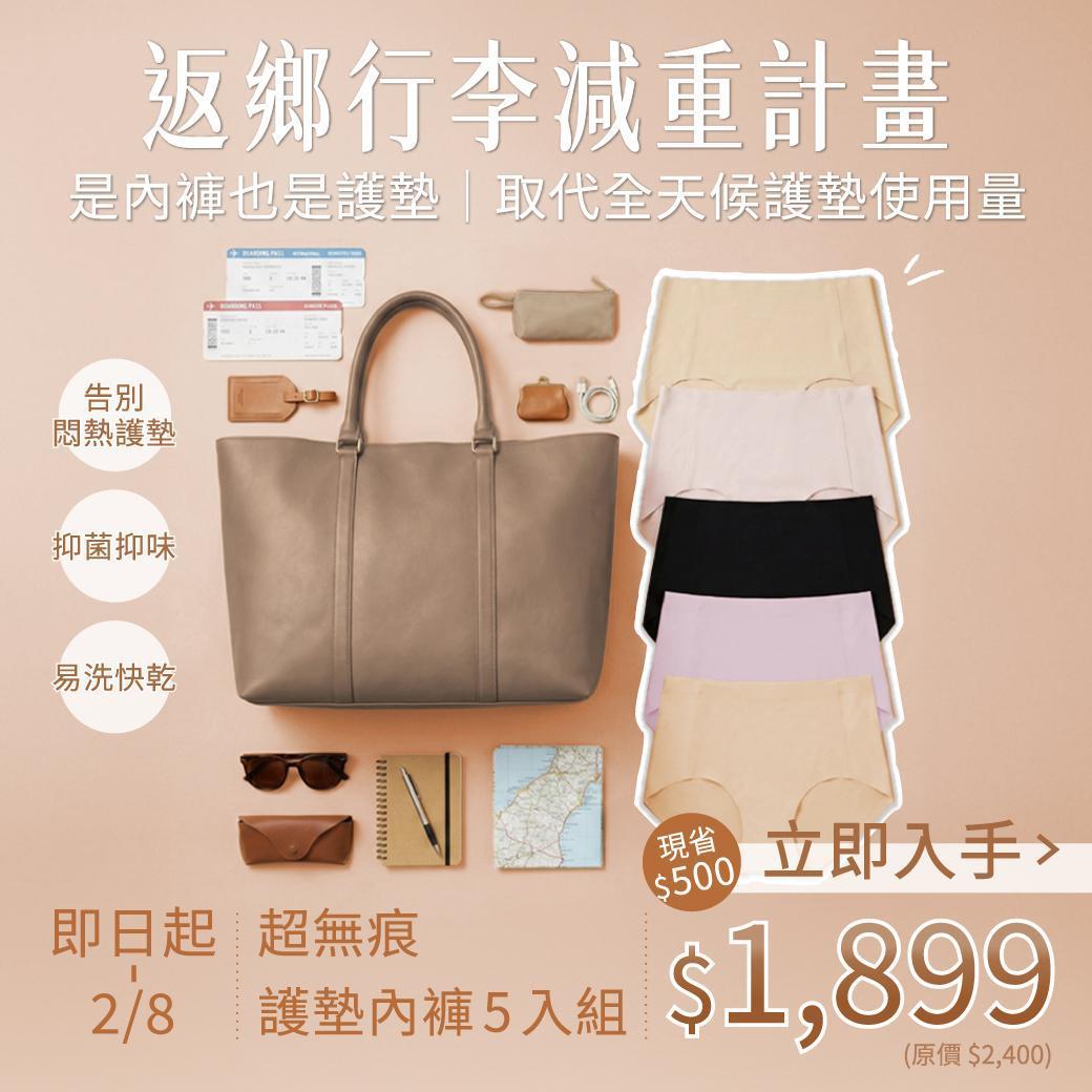 【返鄉必備】輕薄零佔位|護墊內褲 5 入組 (現省$500)