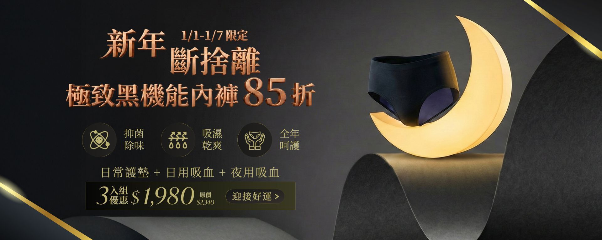 新年斷捨離|極致黑無痕機能組:護墊+日夜吸血內褲 85 折