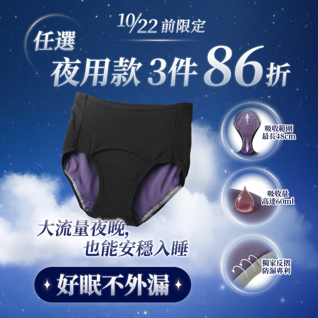 無痕|夜用中腰吸血內褲 (3片衛生棉)