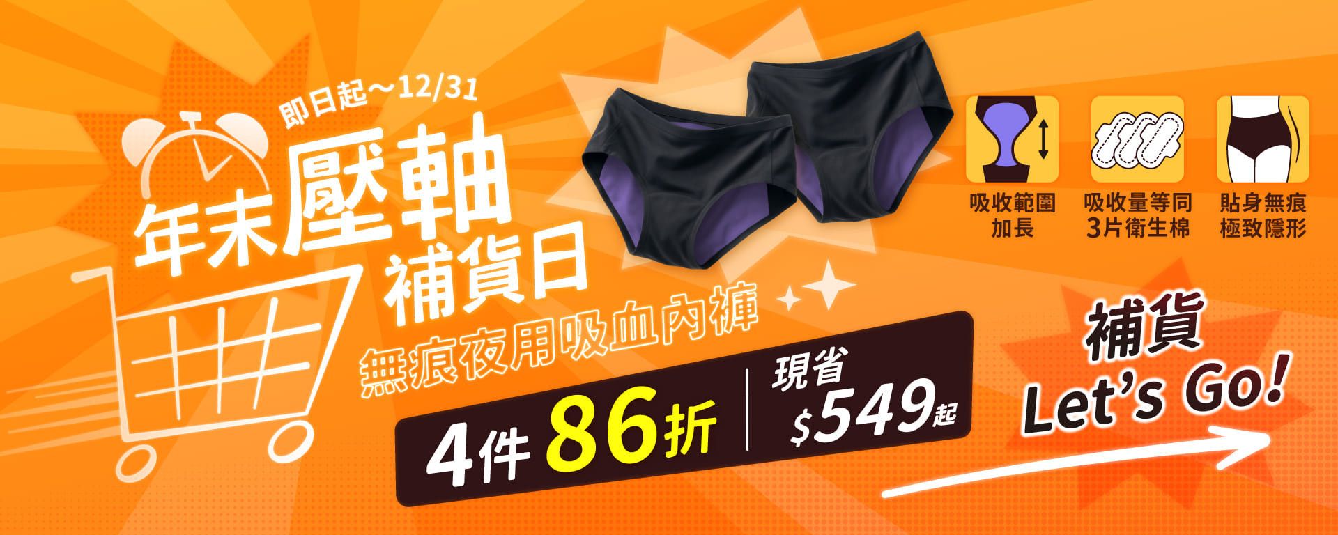 年末壓軸補貨日|無痕夜用吸血內褲 4 件 86 折