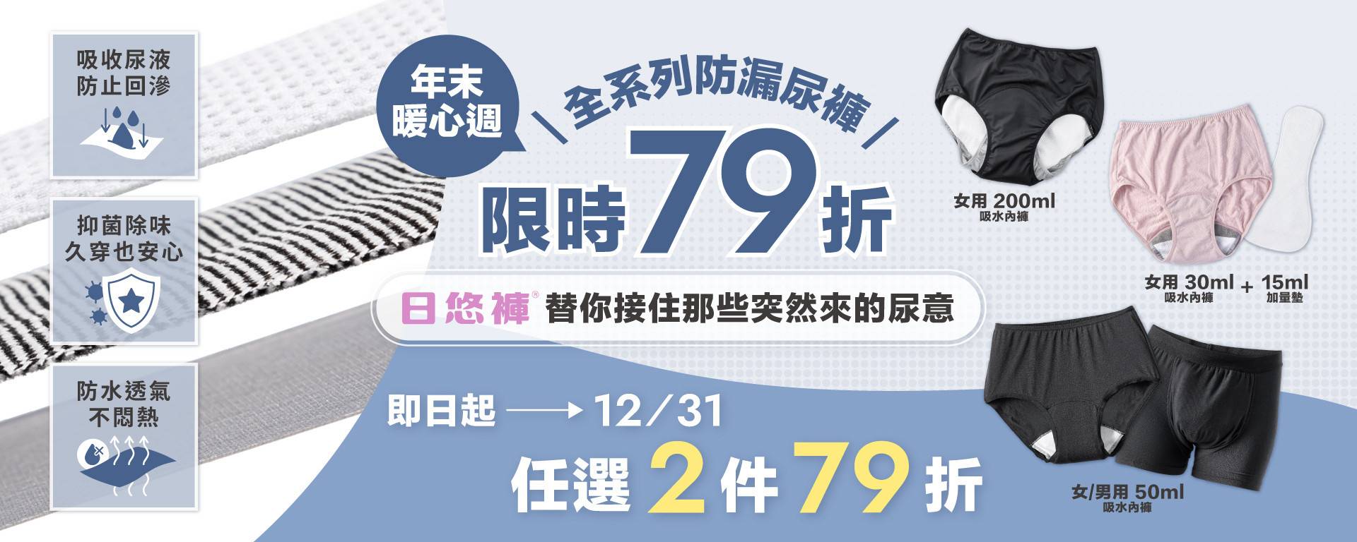 年末暖心週|全系列防漏尿褲限時 79 折