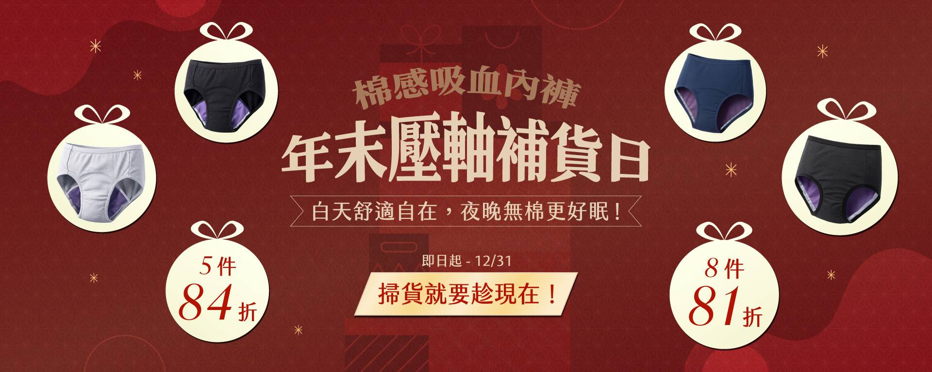 年末壓軸補貨日|棉感吸血內褲最高享 81 折