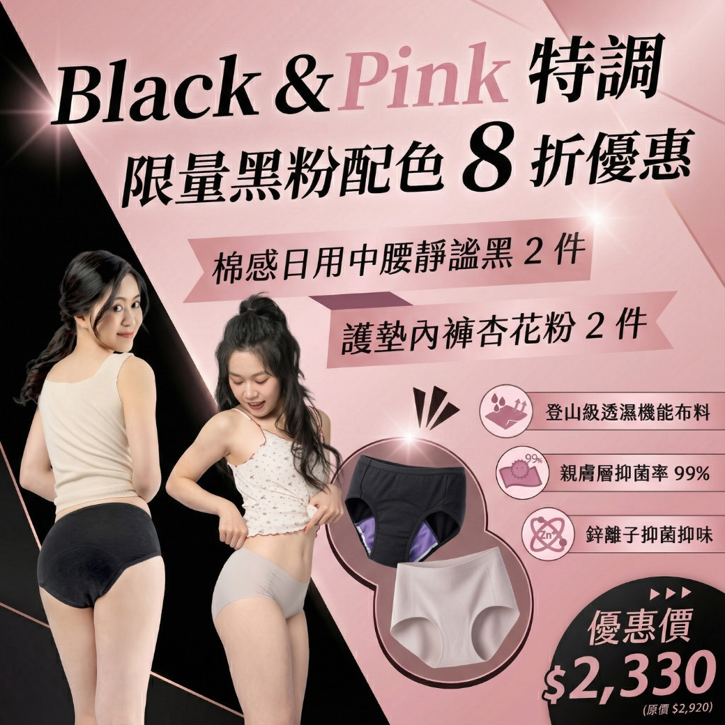 Black & Pink 特調|黑粉限定雙機能內褲組 8 折優惠