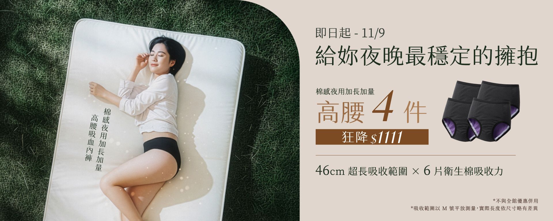 月亮褲高腰全天防護組 | 高腰無痕日夜用四件 85 折
