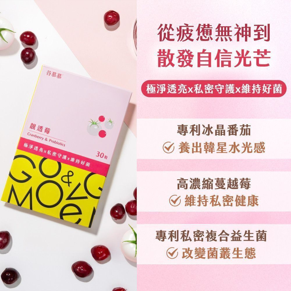 A1. 靚透莓™ 採用320倍高濃縮蔓越莓萃取,每日2粒即可補足36mg A型前花青素(PACs),搭配專利私密複合益生菌+長效維生素C+冰晶番茄+維生素B群+甘胺酸亞鐵,一次補足女性在日常上的需求。