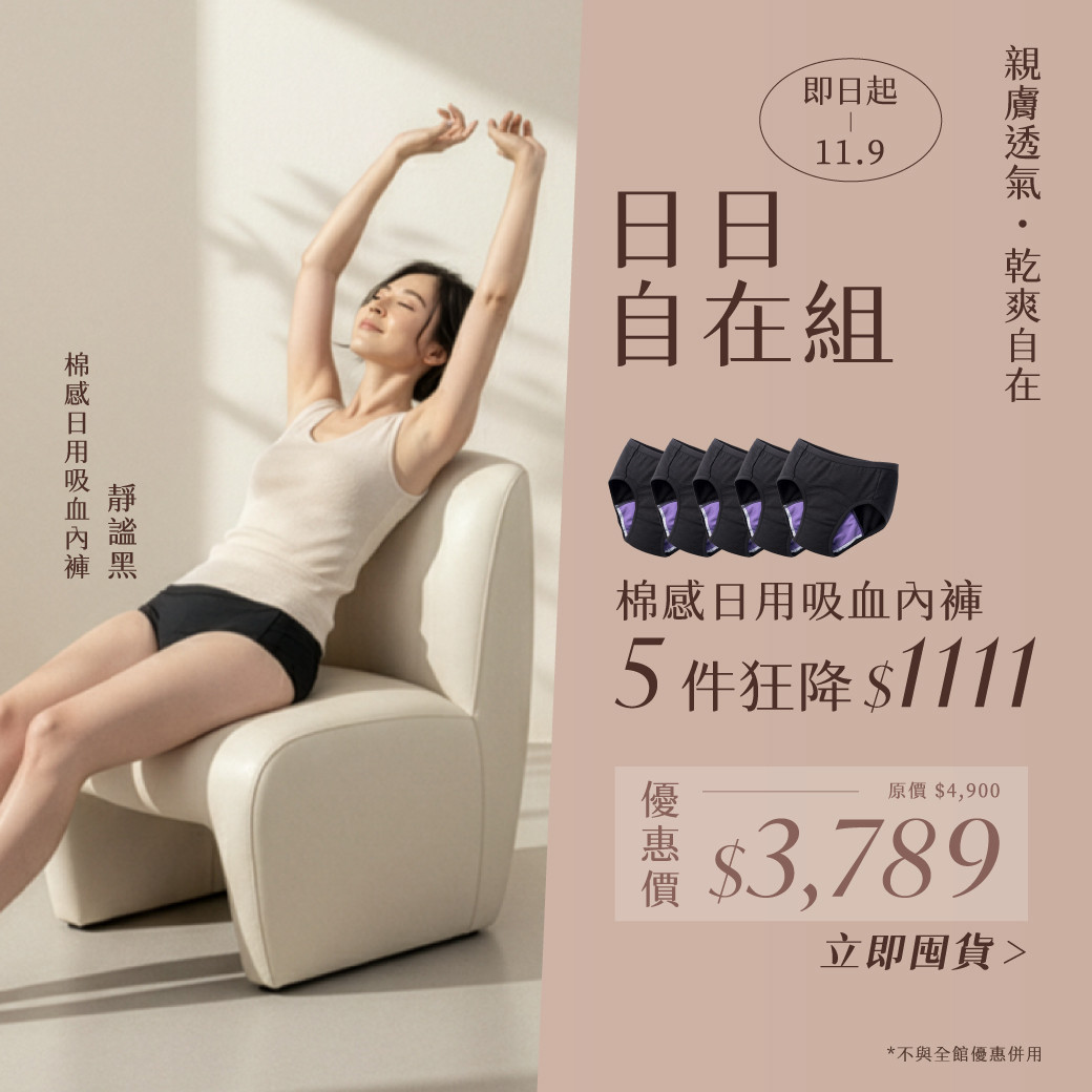 日日自在組|棉感日用吸血內褲 5 件狂降 $1111