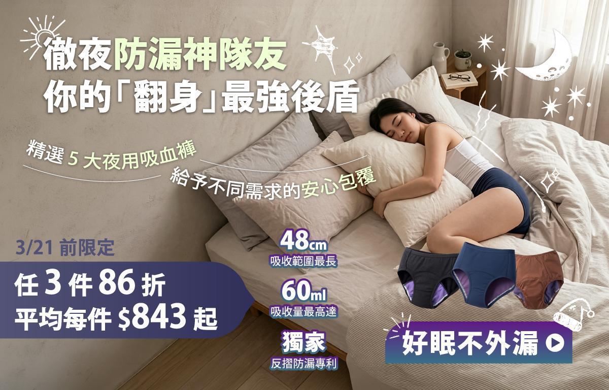 【世界睡眠日】徹夜防漏神隊友|夜用款 2 件 88 折、3 件 86 折