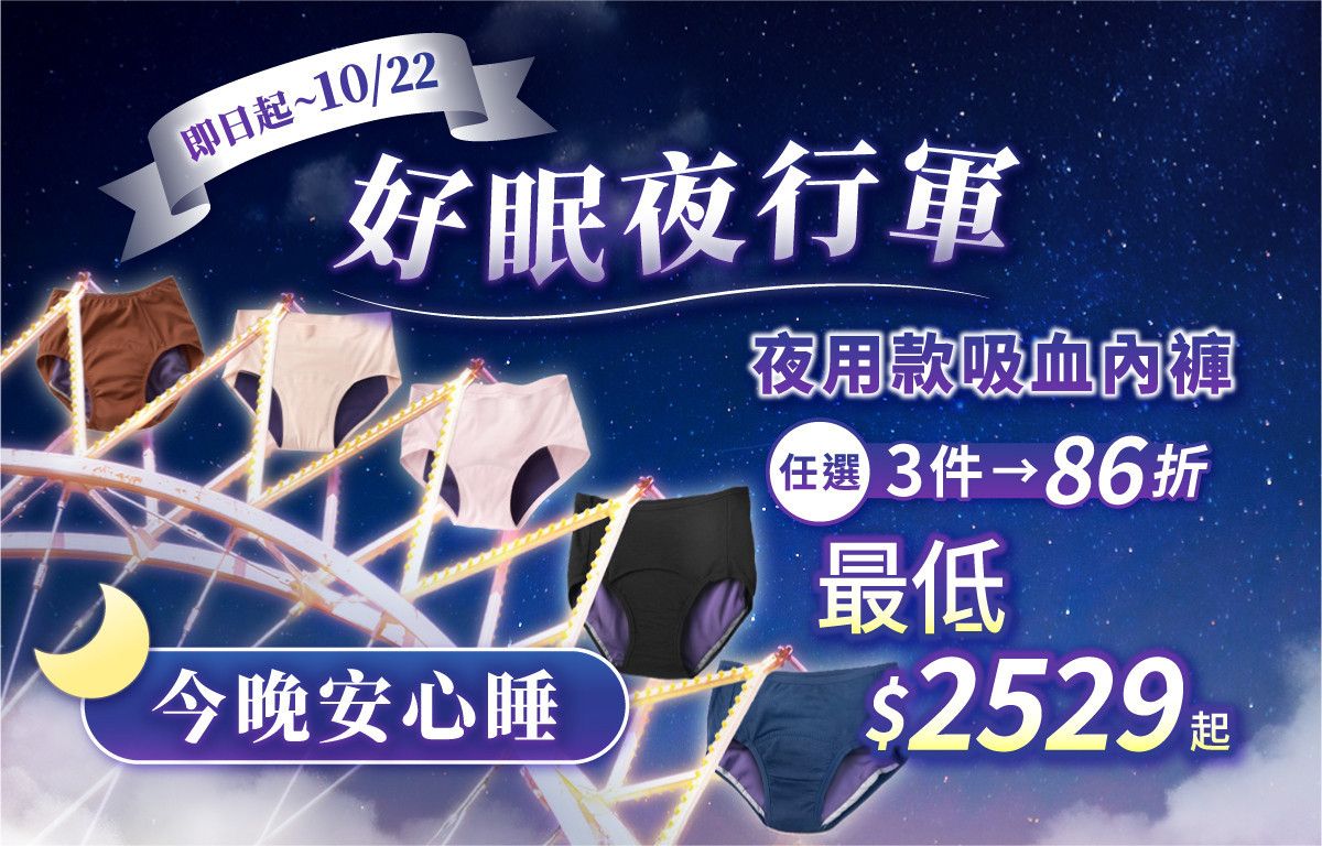 好眠夜行軍|夜用款吸血內褲任選 3 件 86 折