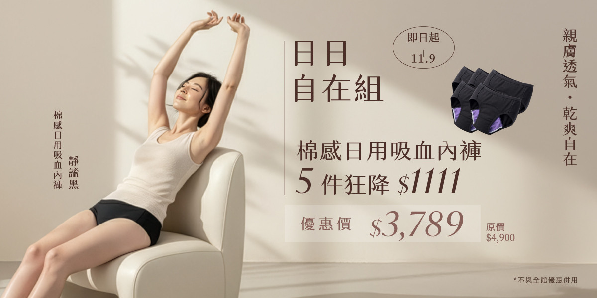 日日自在組|棉感日用吸血內褲 5 件狂降 $1111