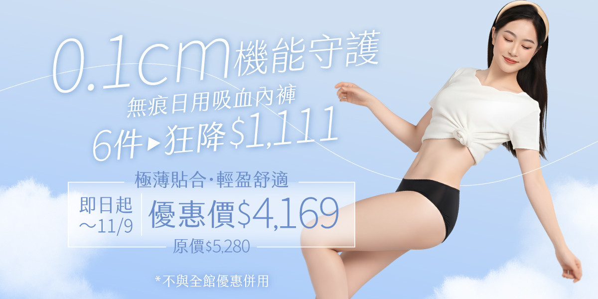 0.1cm 機能守護|無痕日用吸血內褲 6 件狂降 $1111